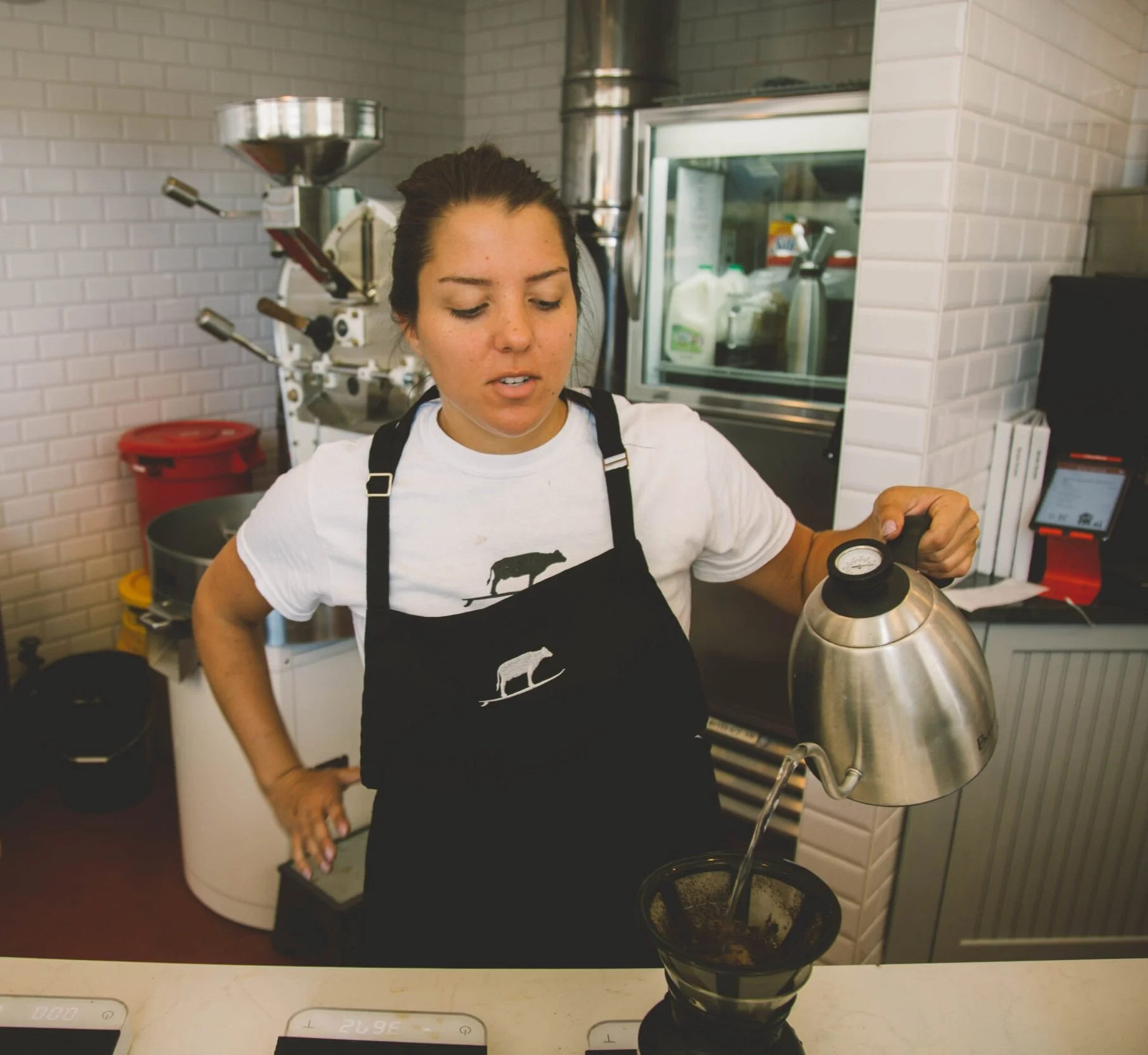 8. Use a small spoon or coffee stirrer to stir the beans as you pour the water over the beans.